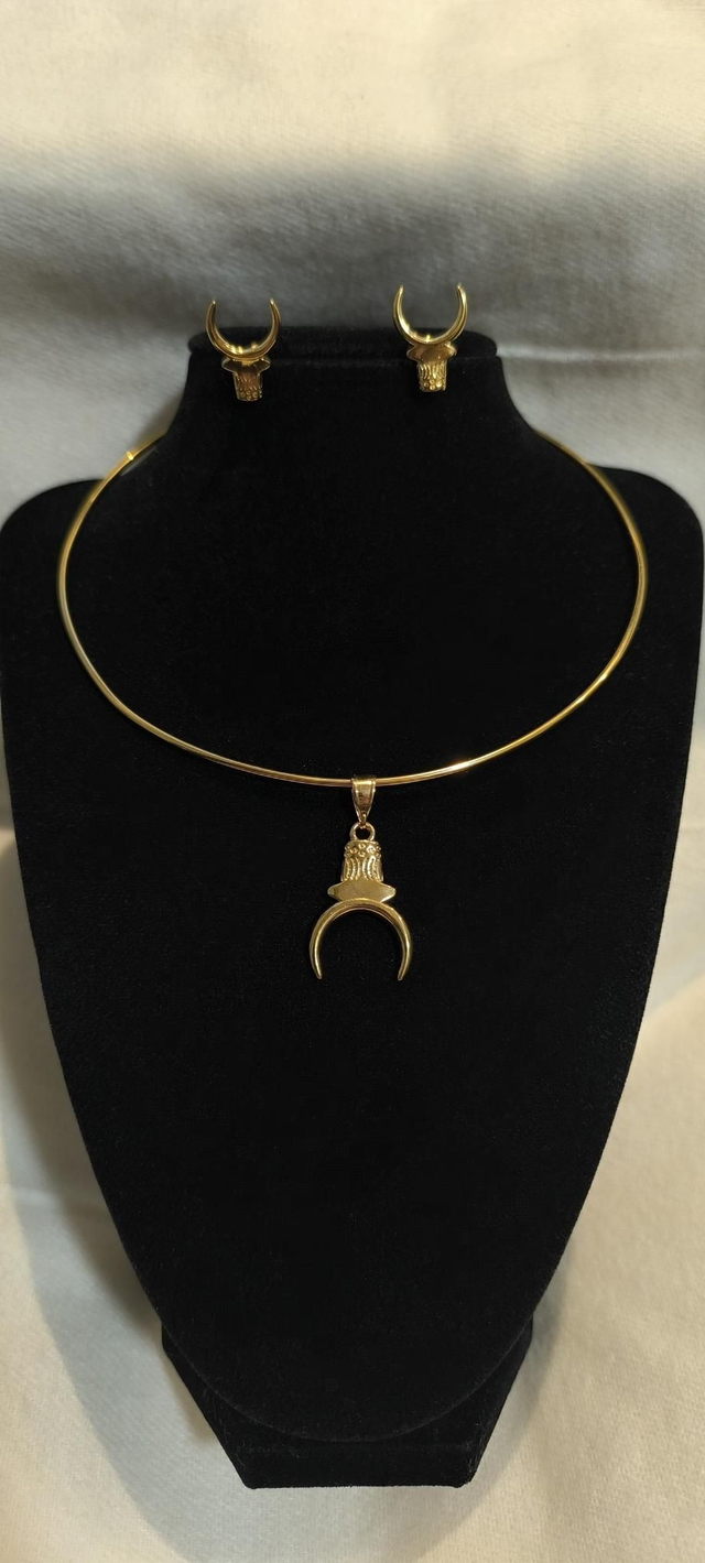 Symbole de richesse, de force et d’identité dans la culture malgache, cette parure met à l’honneur la tête de zébu dans un design traditionnel. Composée d’un collier et de boucles d’oreilles assorties, elle affirme un style authentique et profondément enraciné.