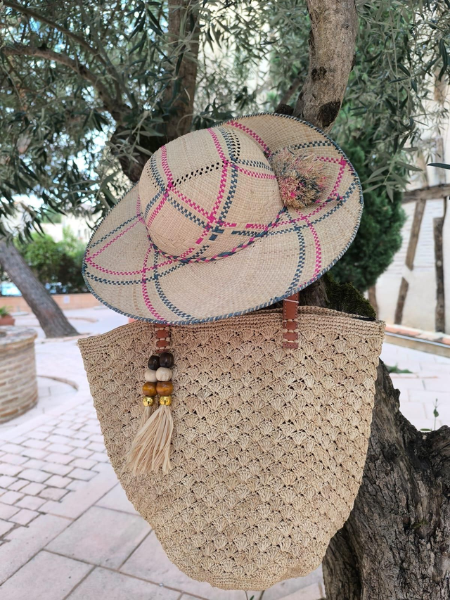 Sac Cabas en Raphia motif et pompom perle