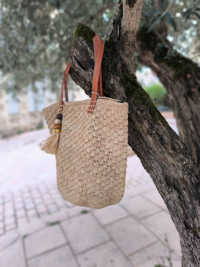 Élégant et pratique, ce sac cabas est entièrement tressé à la main en Raphia. Ses anses en cuir offrent un confort parfait. Spacieux et léger, il est idéal pour le quotidien.